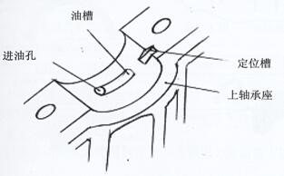 圍。座孔分開面上開有軸瓦定位槽,瓦唇與座孔槽對正。同時要求軸瓦油孔與座孔上油孔對正,參見圖2-3-9 (對YC6L機(jī),軸瓦座上開有油槽,故軸瓦油孔不存